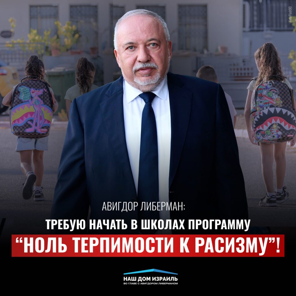 Инцидент в школе Нетании указывает на опасный уровень расизма в школах. Подростки били сверстниц-репатрианток и кричали “Чао-чао, вам здесь не Россия”.Расизм, насилие и травля среди подростков становятся нормой, и чтобы остановить это, полумер недостаточно.Авигдор Либерман: “Министерство образования обязано начать государственную программу “Нулевая терпимость к расизму” приравняв борьбу с расизмом к борьбе с насилием. Это означает, […]